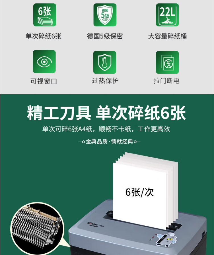 金典GD-9306 辦公5級保密A4單次6張 22L 可碎光盤