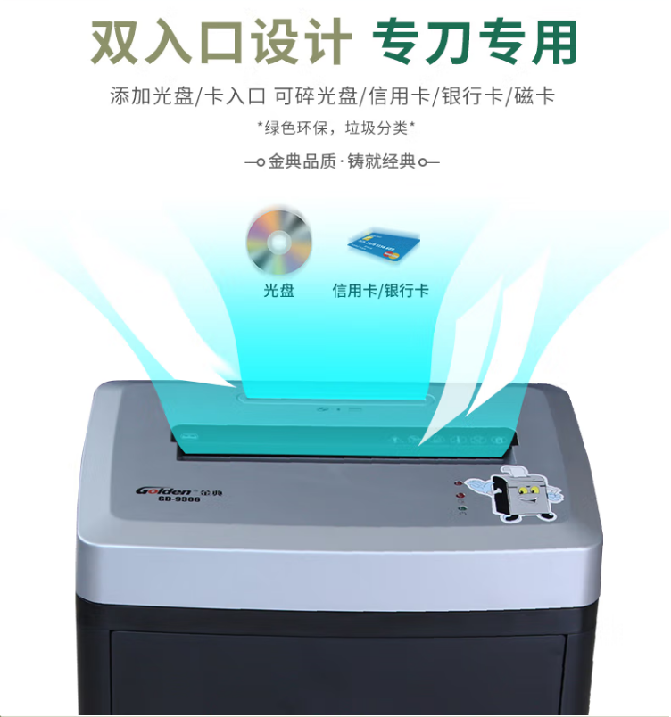 金典GD-9306   辦公5級保密A4單次6張 22L 可碎光盤