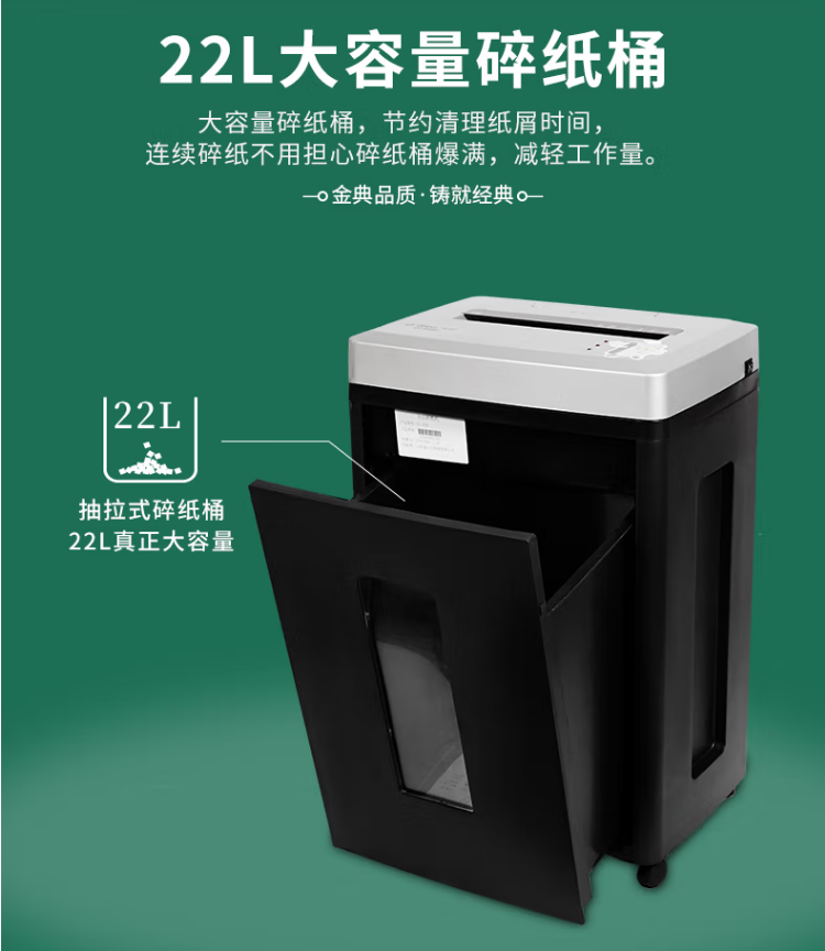 當(dāng)前位置: 首頁 > 辦公設(shè)備 > 碎紙機 > 金典GD-9306 辦公5級保密A4單次6張 22L 可碎光盤